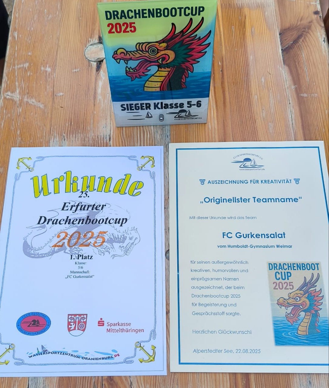 Als fröhliche Beigabe wurde unsere 6c, alias „FC Gurkensalat“, auch noch zur Mannschaft mit dem originellsten Teamnamen gewählt.