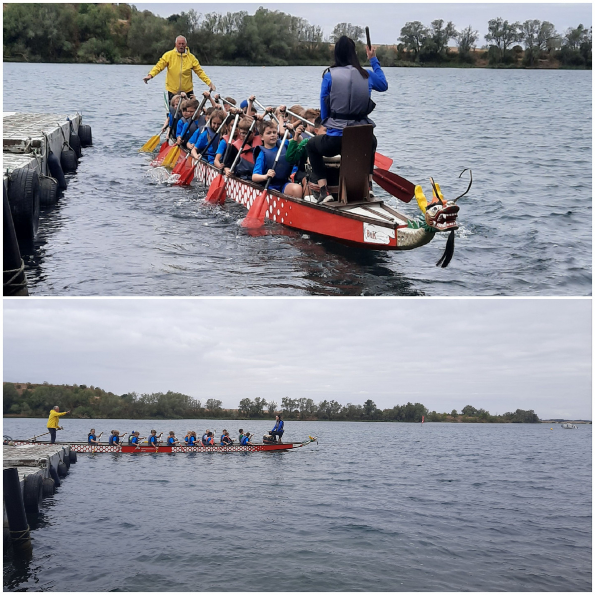 Unsere 6c brillierte mit einer sehr starken sportlichen Leistung im Drachenboot. Kein anderes Team schaffte es in dieser Altersklasse die 250m auf dem See in unter 2 Minuten zurückzulegen. In ihrem zweiten Lauf nahmen die 17 Paddler*innen mit Frau Benzin als taktgebende Trommlerin ihrem Gegner sogar mehr als eine Bootslänge ab.