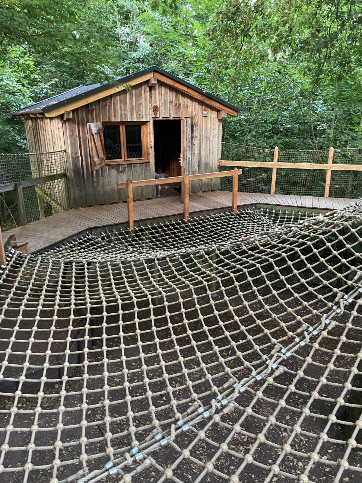 Nach der Belehrung geht es sofort weiter zum Kletterpark ohne auch nur die Koffer ins Baum-/Blockhaus zu bringen. Die Klasse klettert fröhlich in den Baumkronen und Frau Gorath schießt eifrig mit ihrer freiwilligen Helferin Fotos. Zurück zur Jugendherberge: auspacken und essen. Es gibt wirklich megaleckerere selbstgemachte Pinsa und lustige Gespräche an den Tischen. Nach einer Runde Werwolf geht es ins Bett.