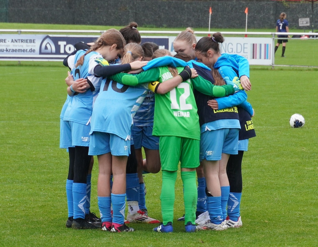 Nach der Technik gingen wir mit 1:0 in Führung, konnten im Spiel aber nicht an die starke Leistung vom vorherigen Spiel anknüpfen. Nichtsdestotrotz führten wir bis Mitte der zweiten Hälfte – auch dank starker Paraden von Elise im Tor. Leider konnten wir die Führung nicht über die Zeit bringen und nach dem 1:1 hieß es dann Platzierungsspiele 9-16 statt Viertelfinale. Im ersten K.o.-Spiel gegen Schleswig-Holstein gab es dann wieder dasselbe Bild wie gegen Sachsen. Wir gingen durch die Technik in Führung, schossen nach dem Ausgleich sogar noch durch Selma das 2:1 und konnten abermals 2 Führungen nicht über die Zeit bringen. Und plötzlich standen wir nach 4 Spielen bei strömendem Regen am 1. Tag in der Runde um die letzten 4 Plätze.