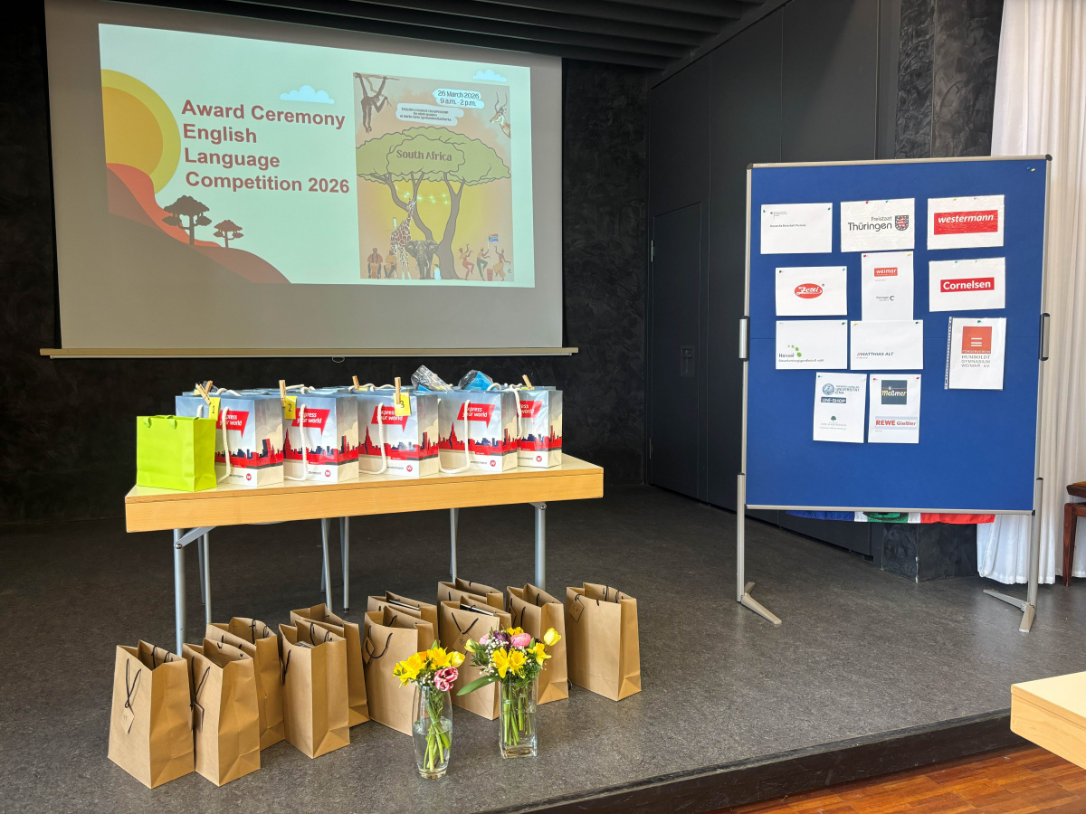 Die „English Language Competition“ 2026 für Weimar und das Weimarer Land fand im „Marie-Curie-Gymnasium“ Bad Berka statt. Angekommen in dieser äußerst modernen Schule, ging es erst einmal zur Anmeldung. Jedem Schüler wurde eine Nummer und somit auch ein Sitzplatz zugeteilt. Begleitet wurden wir dabei von unseren Lehrkräften Frau Rittermann und Herrn Uhlworm.